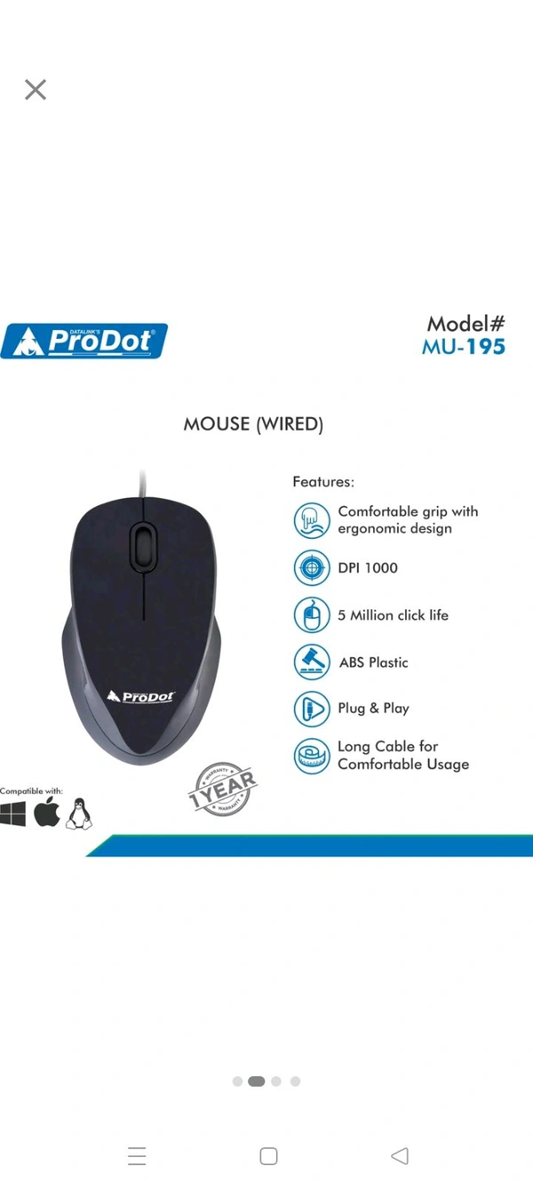 Experience smooth navigation and accurate cursor control with the Prodot Wired Optical Mouse. Designed for comfortable use during long working hours, this mouse is perfect for both office and home use.